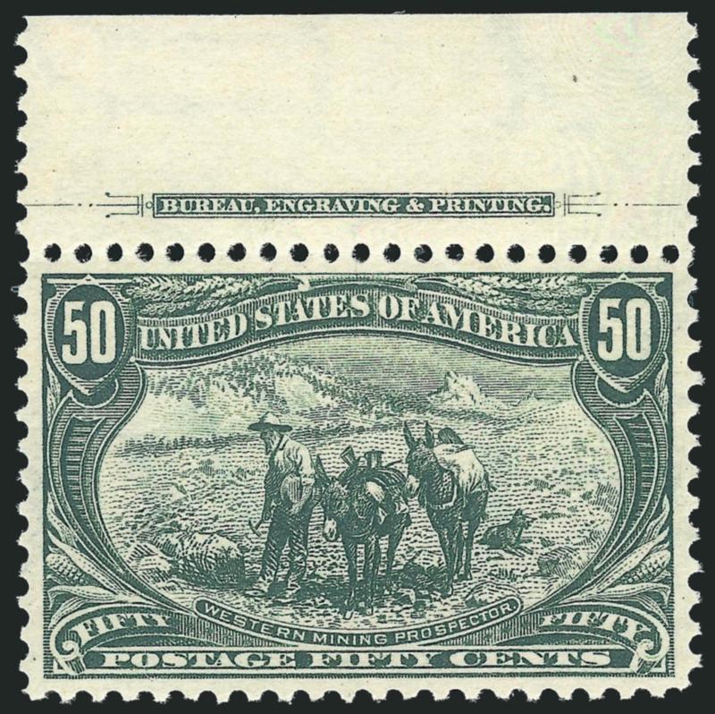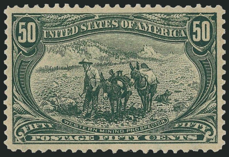 EXTREMELY FINE. AN OUTSTANDING MINT NEVER-HINGED EXAMPLE OF THE 50-CENT TRANS-MISSISSIPPI ISSUE. A VERY DIFFICULT ISSUE TO FIND IN THE HIGHER GRADES.
