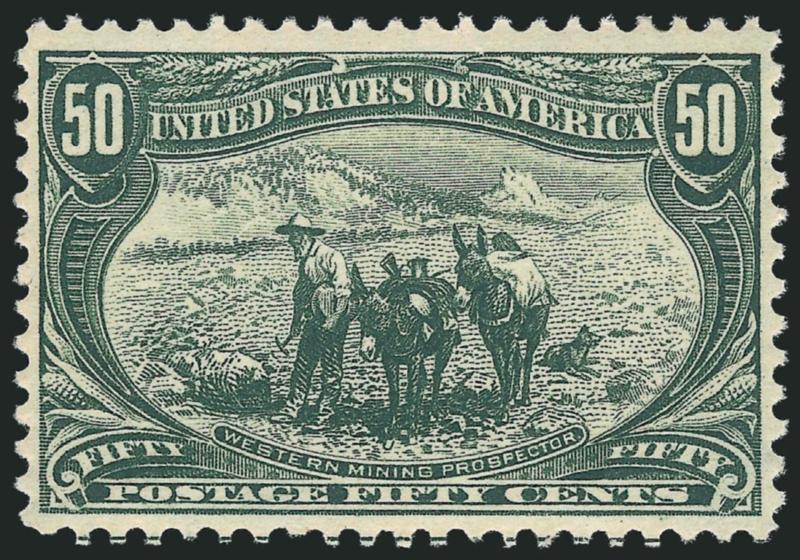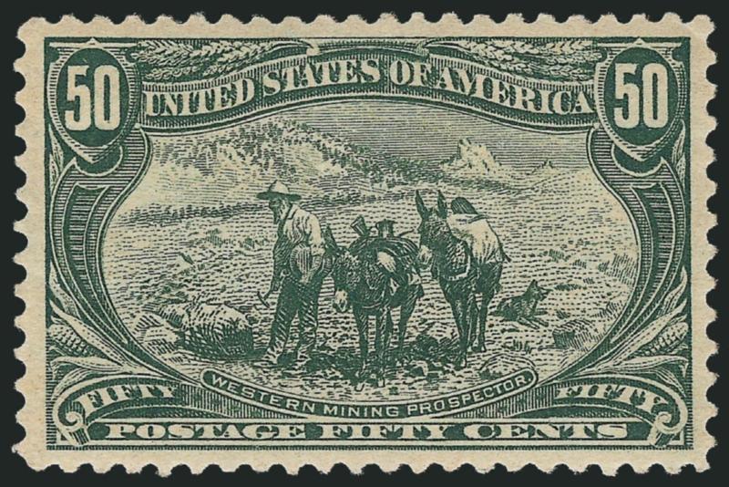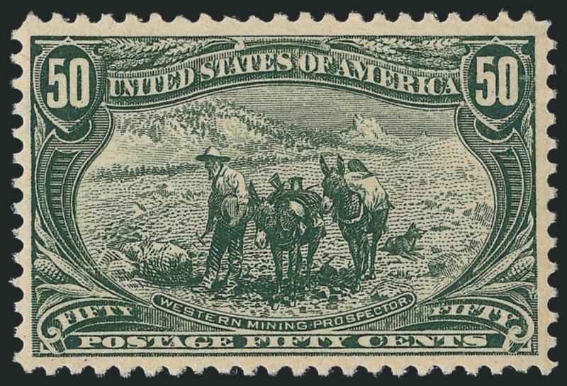 The 50c Trans-Mississippi is extremely scarce in well-centered condition. It also seems that fewer 50c stamps exist in Mint N.H. condition, relative to the dollar values of the set.