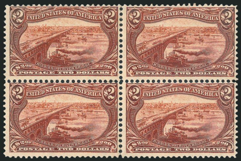 FINE AND ATTRACTIVE BLOCK OF THE $2.00 TRANS-MISSISSIPPI ISSUE.