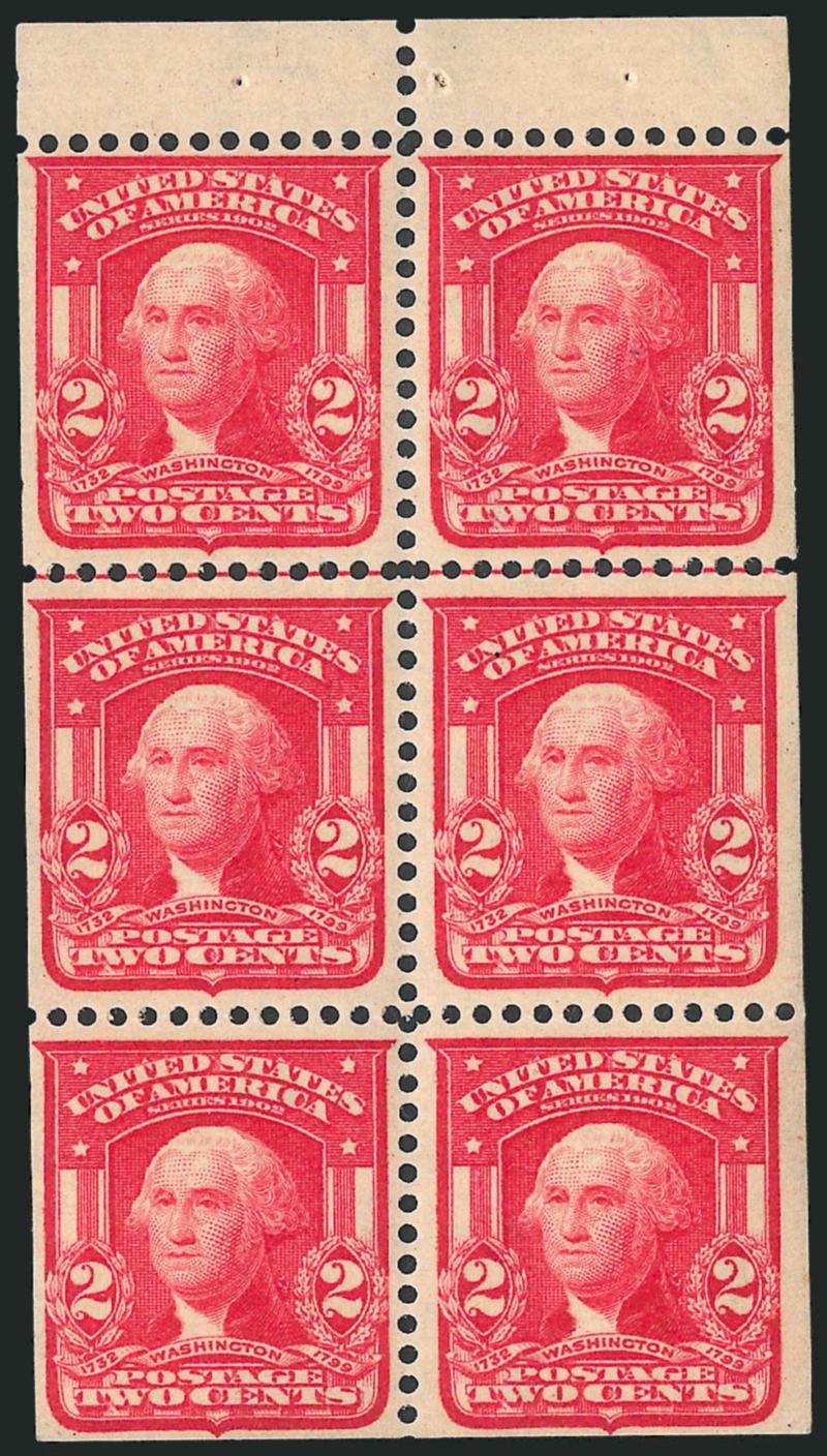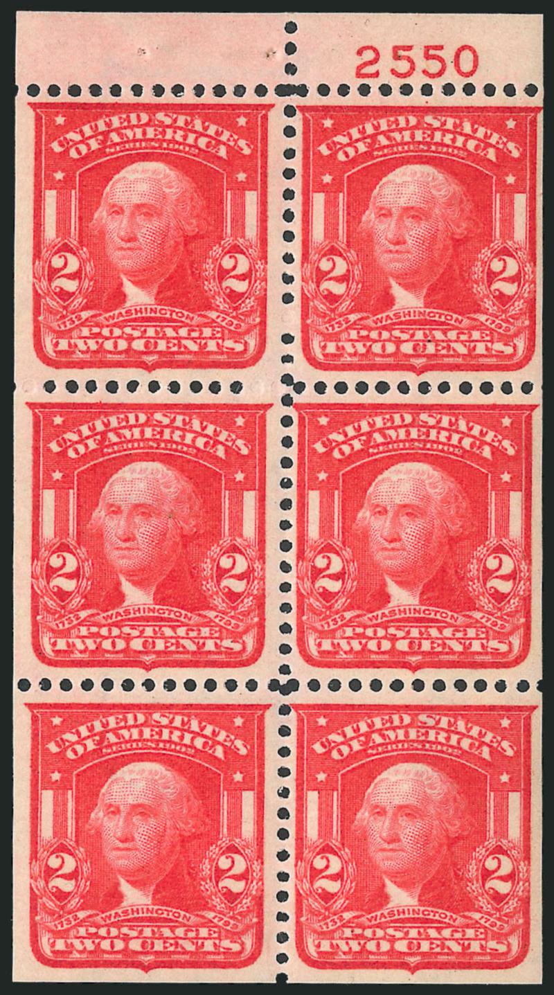1746 nh Image2c Scarlet, Ty. I, Booklet Pane of Six (319p). Position D with plate no. 2550, Mint N.H., vivid color on fresh paper, Very Fine and choice booklet pane from this desirable position, the middle and bottom left stamps are Extremely Fine Jumbos (Image)