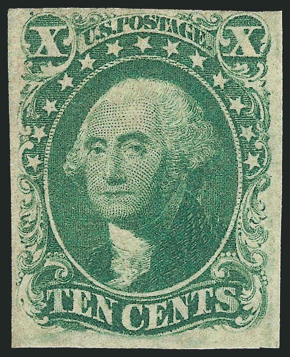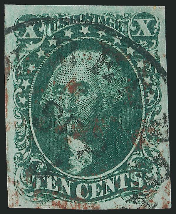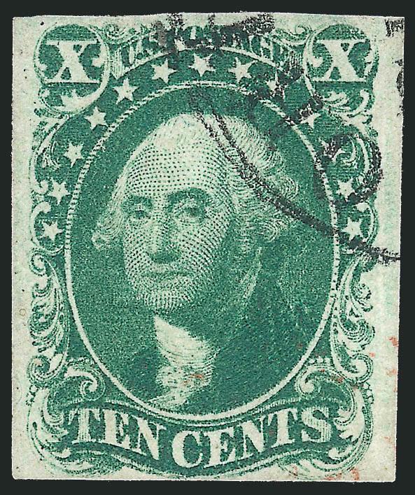 EXTREMELY FINE GEM. A SUPERB USED EXAMPLE OF THE 1855 10-CENT GREEN TYPE I.