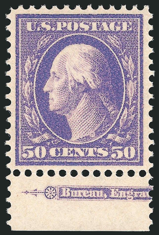 50c Violet (341). Mint N.H. with part imprint selvage at bottom, pretty shade, Extremely Fine, with 2010 P.S.E. certificate (XF 90, SMQ $1,650.00)