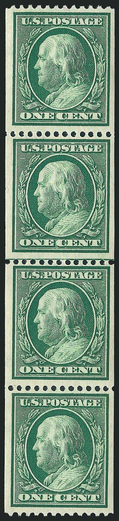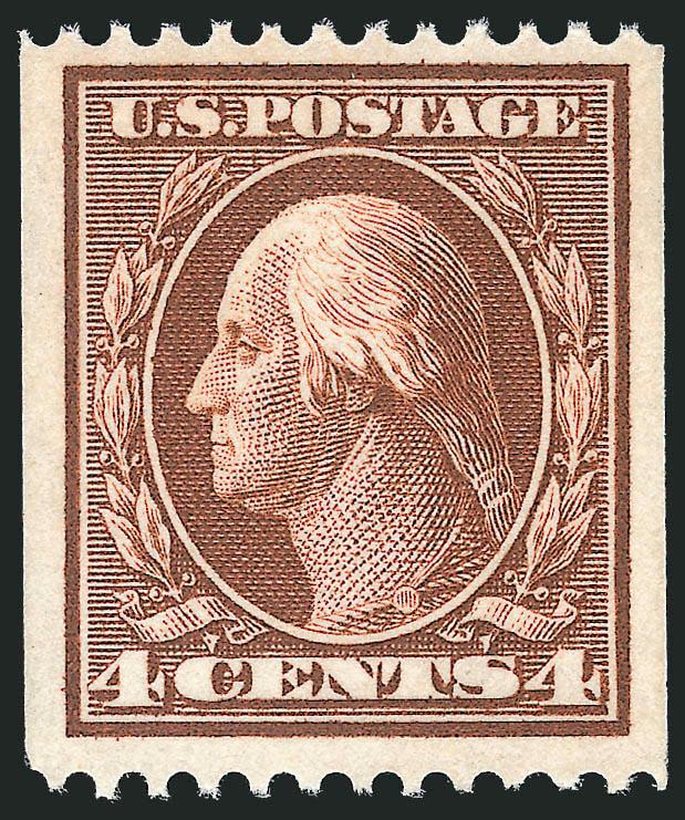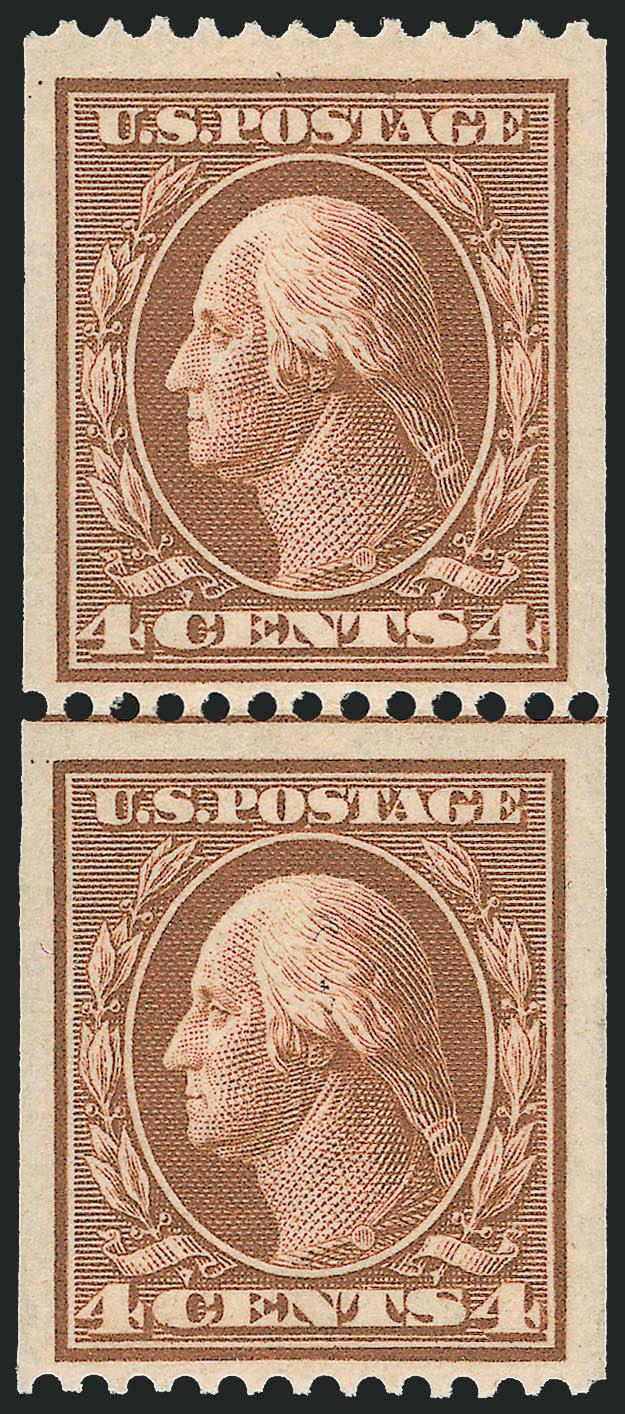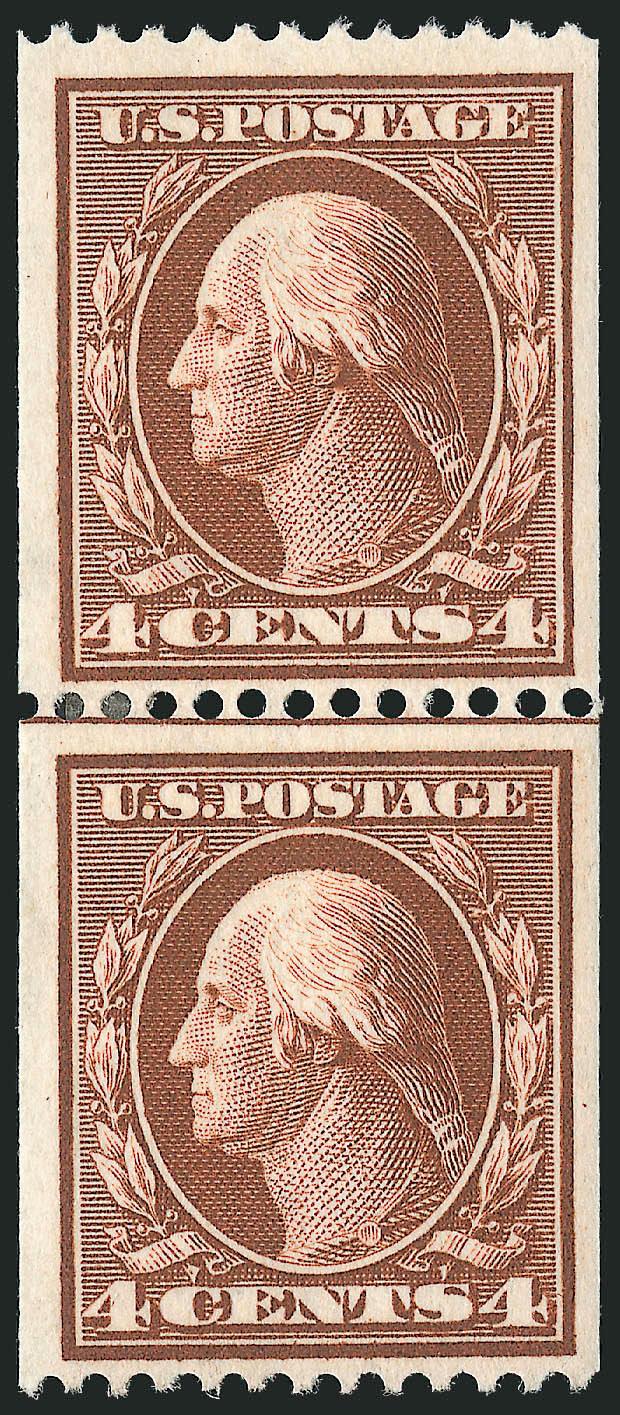 VERY FINE. A BEAUTIFUL MINT NEVER-HINGED GUIDE LINE PAIR OF THE 1909 4-CENT VERTICAL COIL, SCOTT 350.