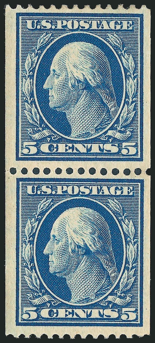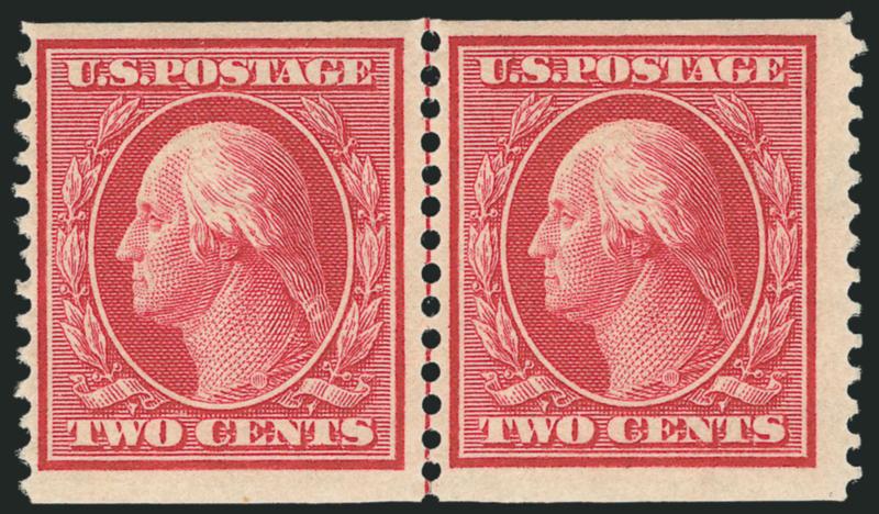VERY FINE AND RARE MINT NEVER-HINGED GUIDE LINE PAIR OF THE 1909 2-CENT HORIZONTAL COIL, SCOTT 353.