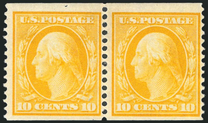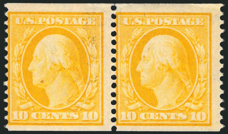 FINE. AN ATTRACTIVE PAIR OF THE SCARCE 1909 TEN-CENT YELLOW COIL, SCOTT 356.