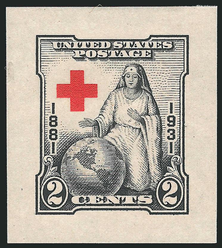 875 P Image2c Red Cross, Small Die Proof on White Wove (702P2). 26 x 29mm, bright colors, Very Fine and scarce (Image)