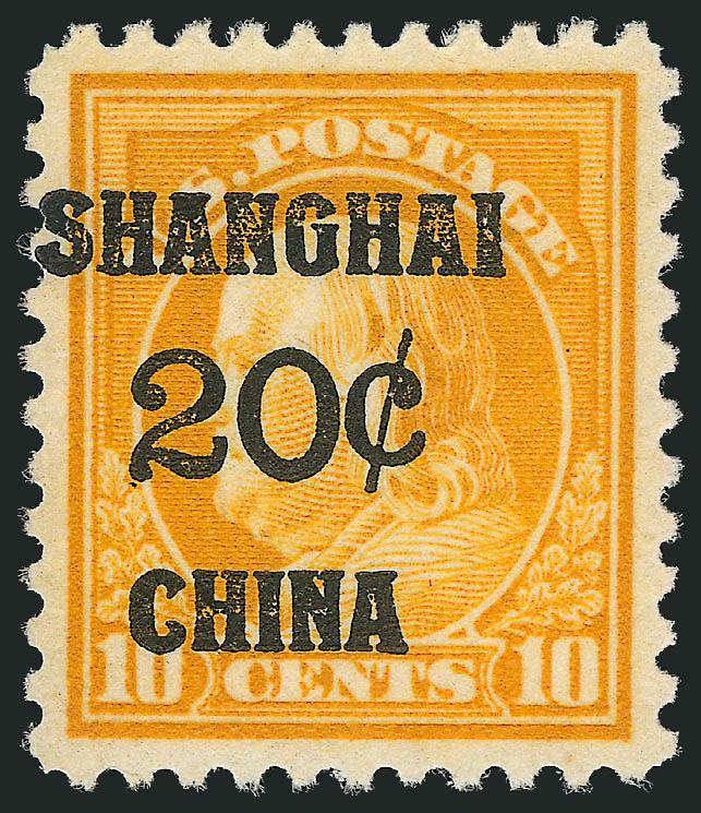 946 nh Image20c on 10c Offices in China (K10). Mint N.H., vivid color, surcharge shifted noticeably to the left, Extremely Fine, with 2005 P.S.E. certificate (XF 90, SMQ $325.00) (Image)