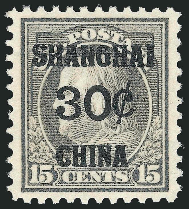 948 nh Image30c on 15c Offices in China (K12). Mint N.H., deep shade, well-proportioned margins, Extremely Fine, with 2008 P.S.E. certificate (XF 90, SMQ $400.00) (Image)