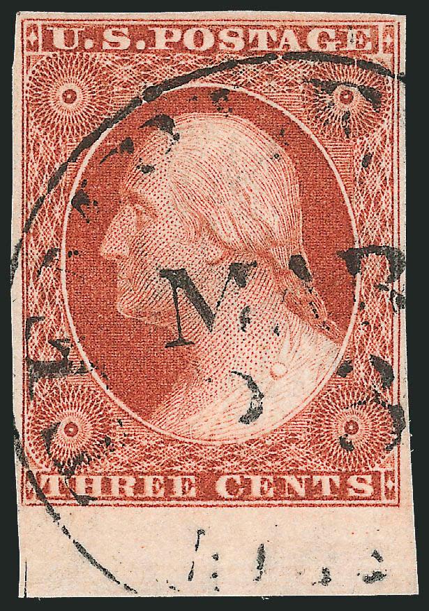 181   Image3c Orange Brown, Ty. II (10A). Position 3R5E, large to huge margins including top sheet margin, radiant color, neat strike of New York circular datestamp, Extremely Fine (Image)