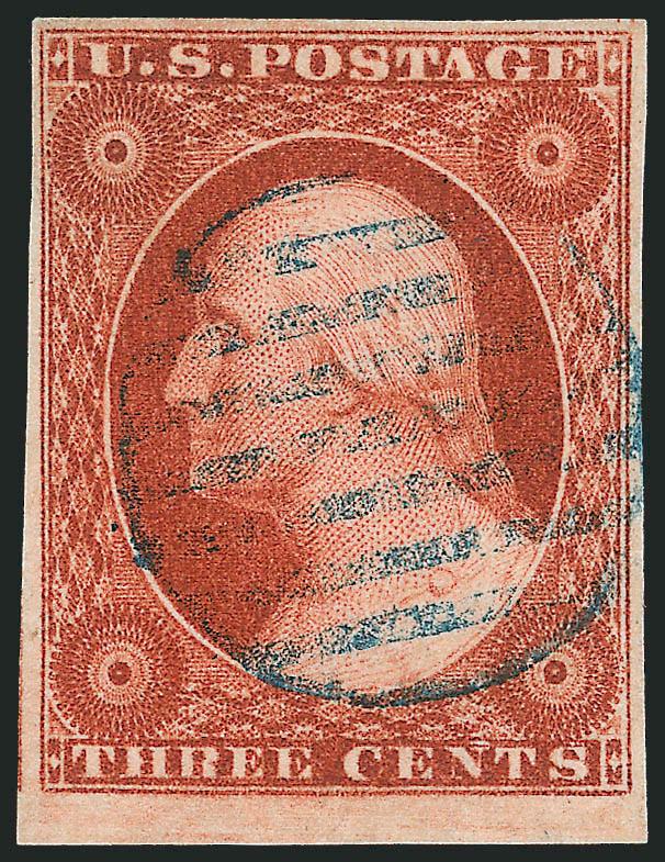 180   Image3c Orange Brown, Ty. II (10A). Large even margins three sides with top sheet margin, gorgeous deep shade, unobtrusive strike of grid cancel, Extremely Fine Gem (Image)
