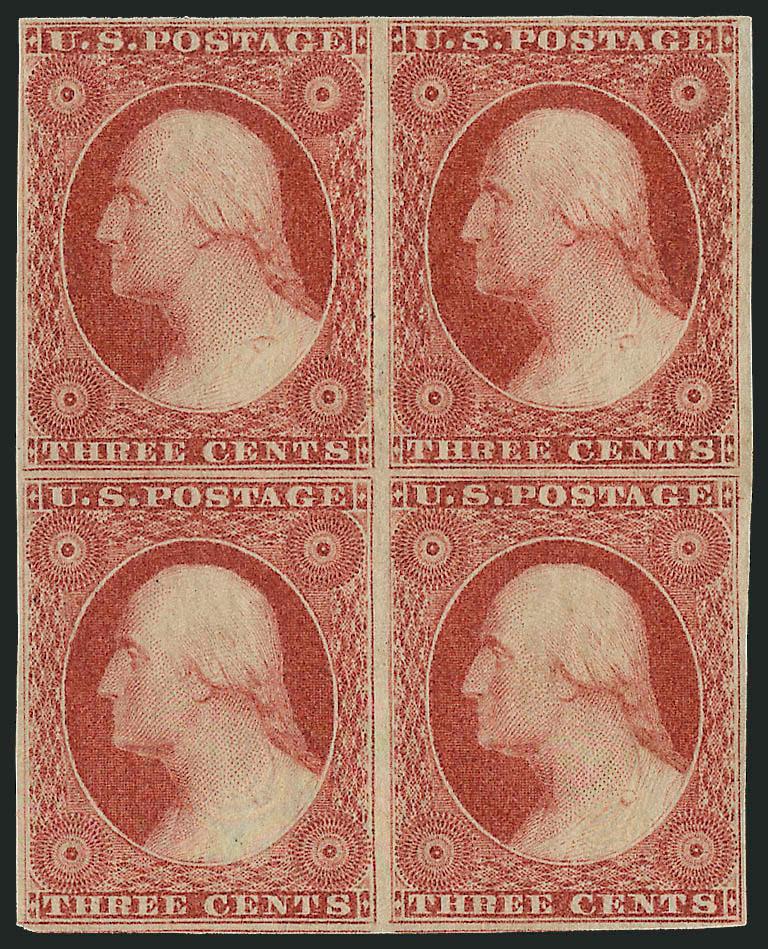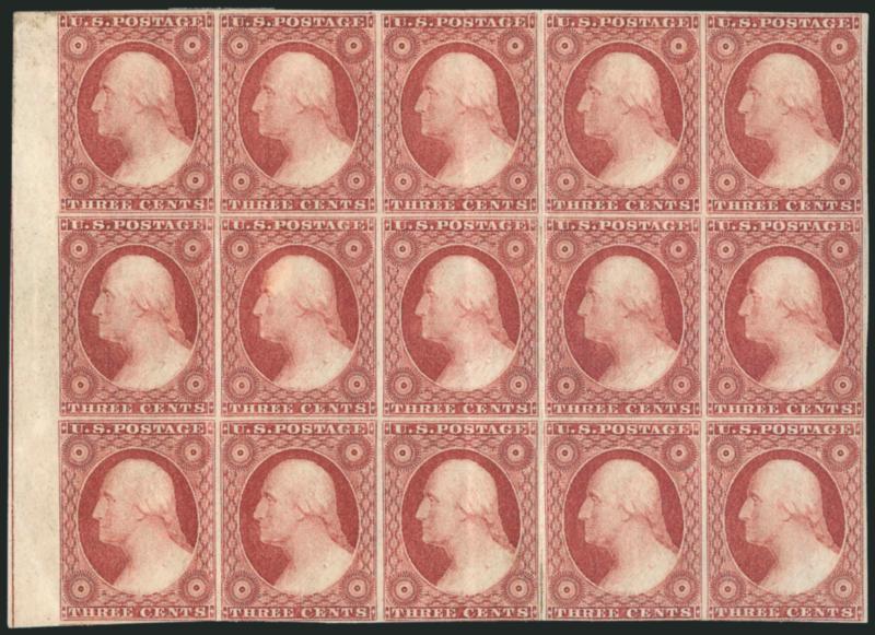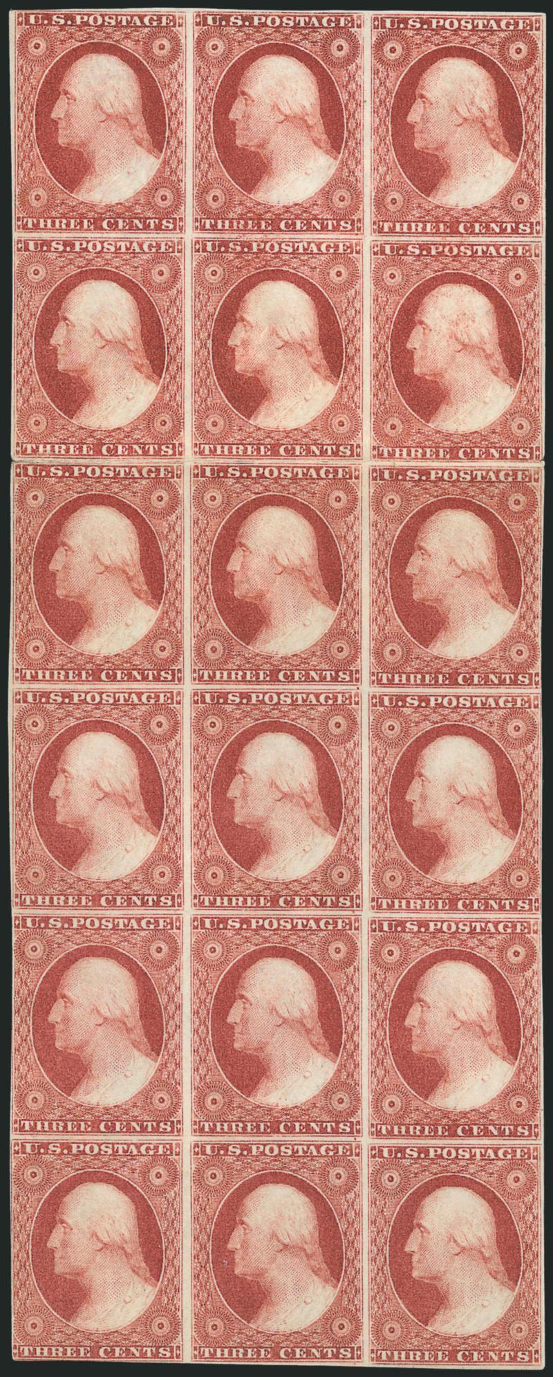 VERY FINE. A SCARCE ORIGINAL-GUM BLOCK OF 18 OF THE 3-CENT 1851 TYPE II.