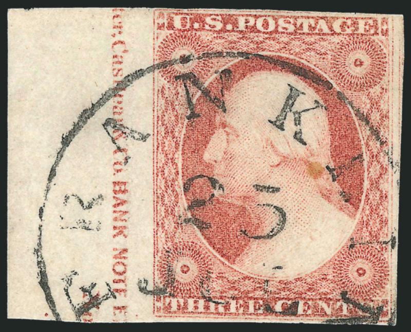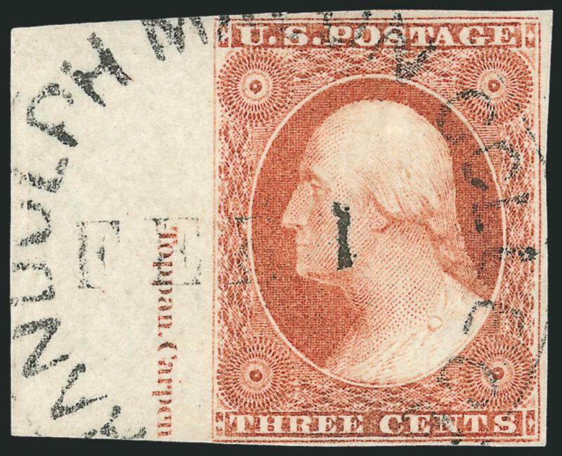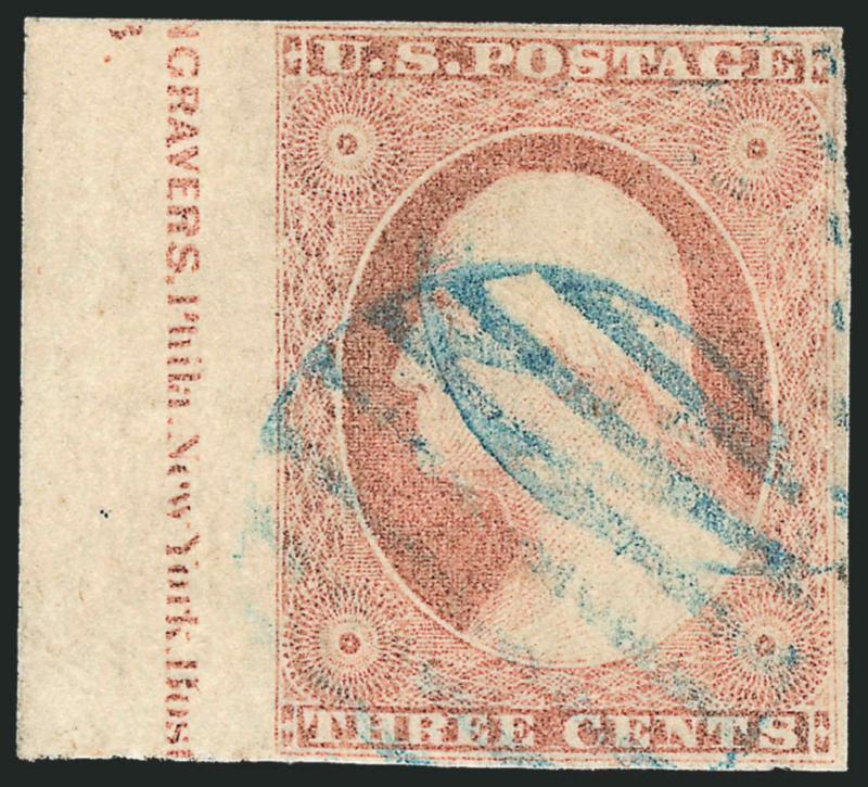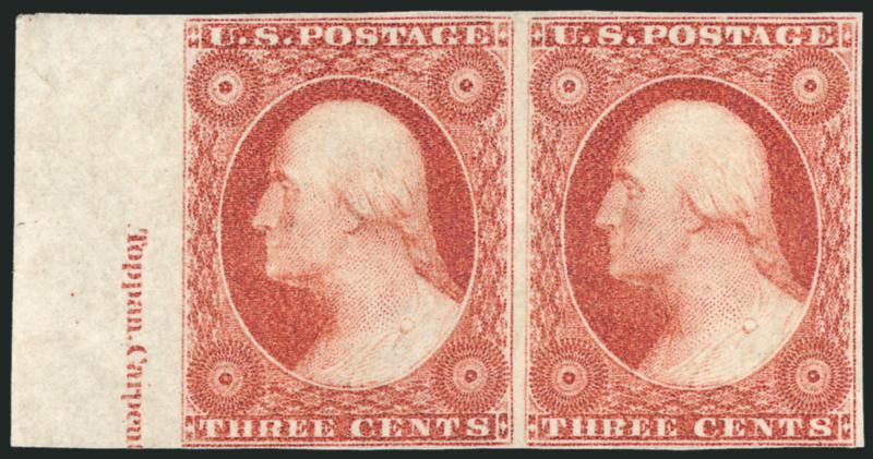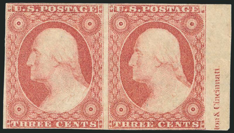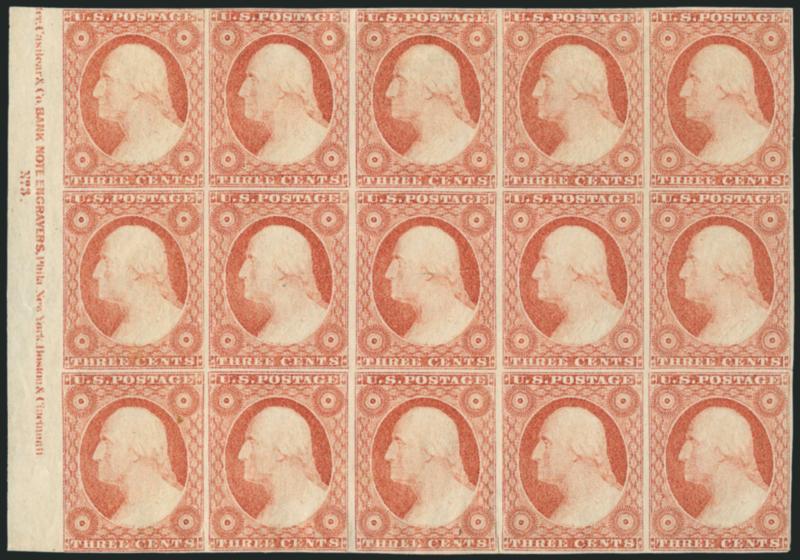 VERY FINE APPEARANCE. A SCARCE AND DESIRABLE BLOCK OF FIFTEEN OF THE 1851 3-CENT TYPE II WITH THE FULL PLATE NUMBER AND NEARLY COMPLETE IMPRINT.