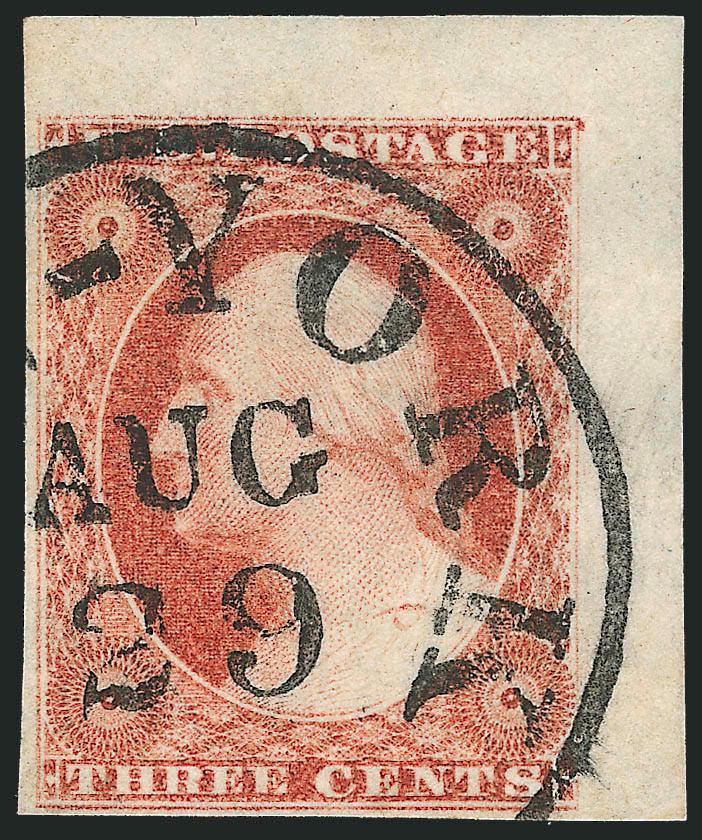325   Image3c Dull Red, Ty. I (11). Huge margins to clear including top right corner sheet margins, rich color and bright paper, perfect strike of New York circular datestamp, Extremely Fine (Image)