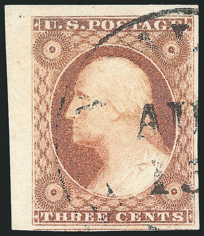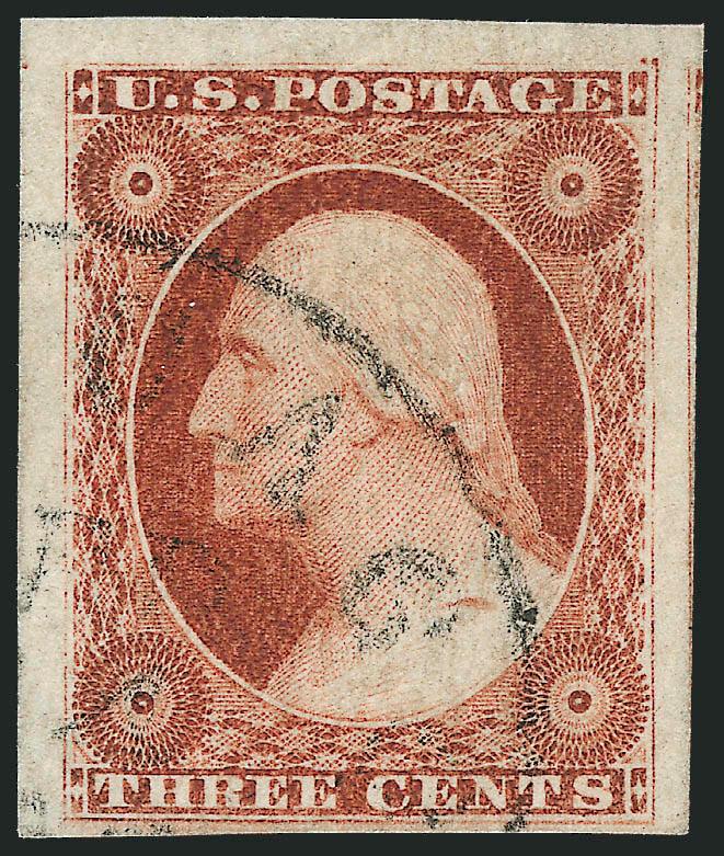 336   Image3c Dull Red, Ty. I (11). Position 1R4, huge margins including top left corner sheet margins and part of adjoining stamp at bottom, rich color, neat strike of circular datestamp, Extremely Fine Gem, a beautiful stamp, with 2004 P.F. certificate (Image)