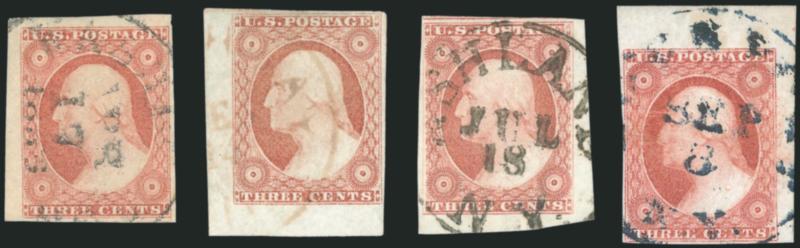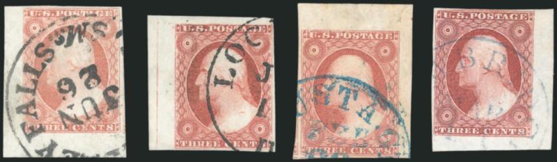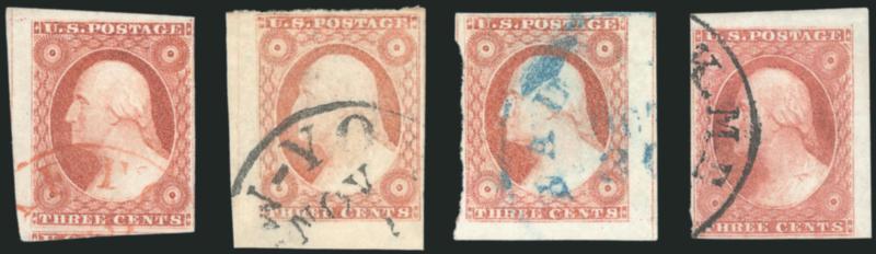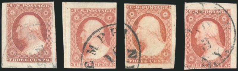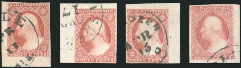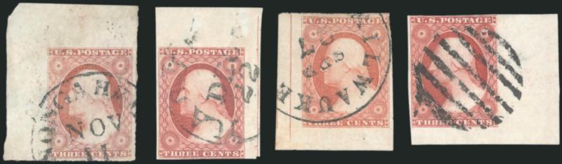 3c 1851-56, Dull Red, Corner Margin Copies, Cont. (Scott 11-11A)