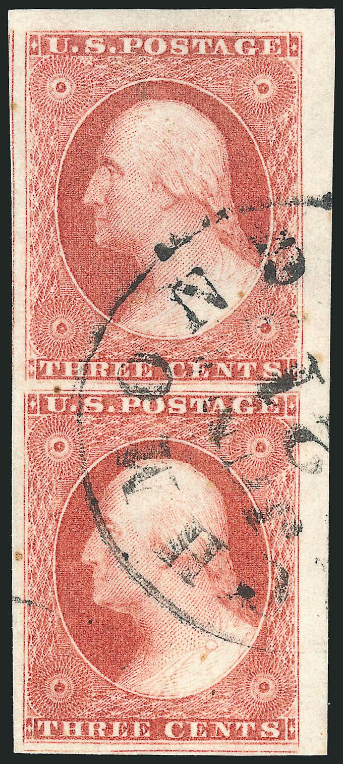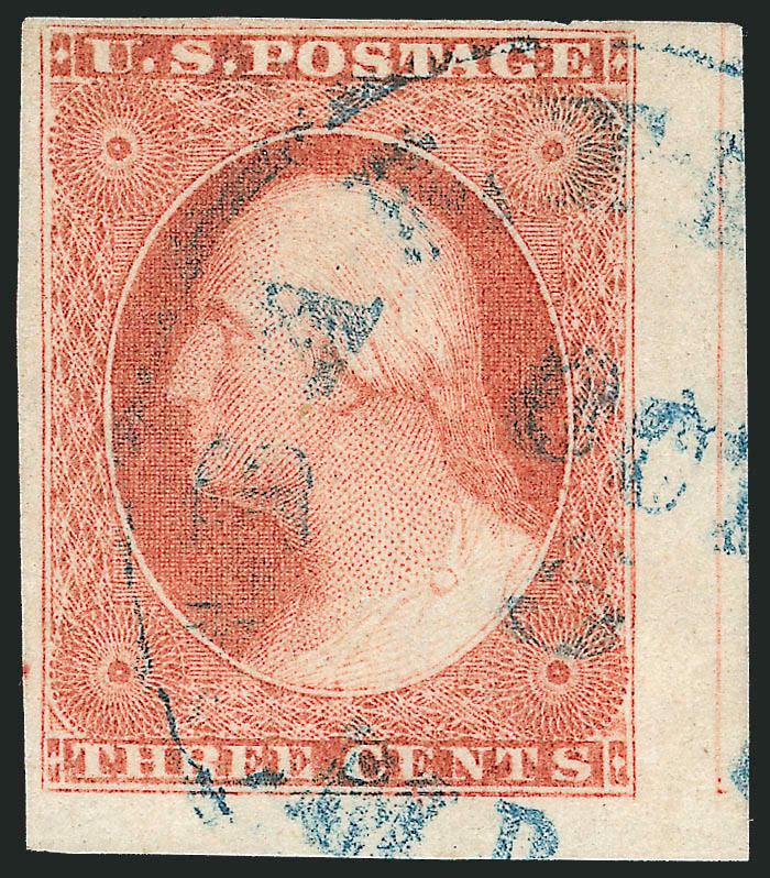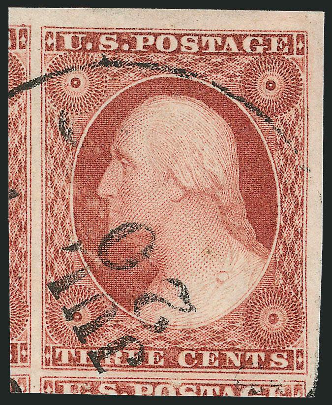3c 1851-56, Claret, Imprint and Corner Margin Copies (Scott 11-11A)