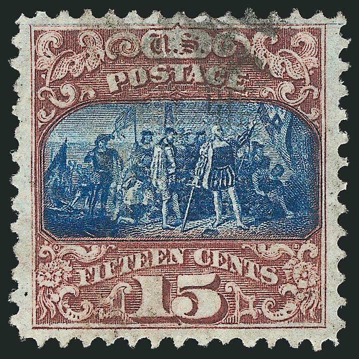 15c Brown & Blue, Ty. I (118). Light cork cancel clear of vignette, fresh paper, Very Fine and choice, with 2001 P.S.E. and 2007 P.F. certificates (Image)Search for comparables at SiegelAuctions.com |