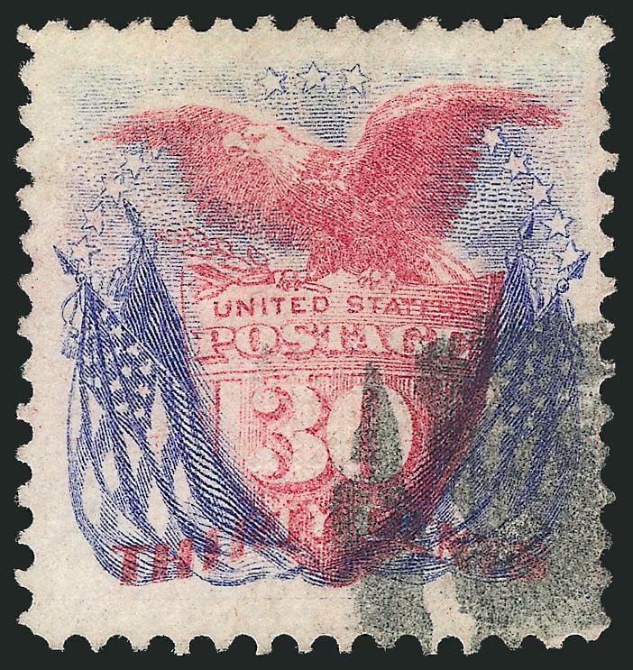 30c Ultramarine & Carmine (121). Unusually wide margins, neat cork cancel at lower right, Very Fine and choice, a pretty stamp, with 1991 and 2005 P.F. certificates