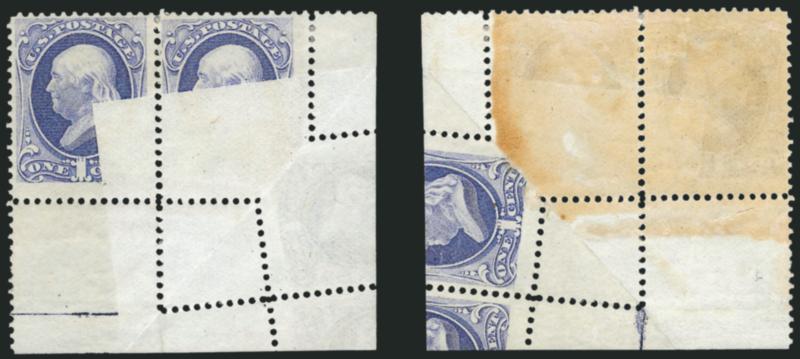 VERY FINE. AN UNUSUAL AND DRAMATIC PRINTING FOLDOVER ERROR ON THE ONE-CENT 1873 CONTINENTAL BANK NOTE COMPANY ISSUE.