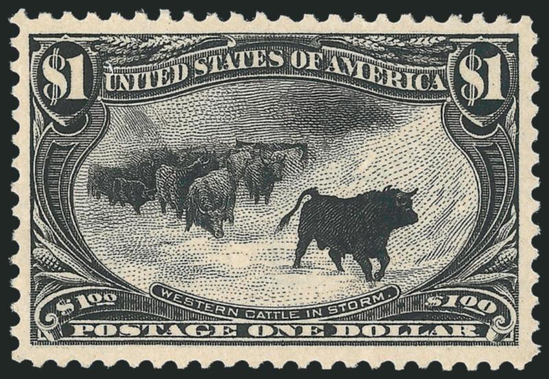 731 nh Image$1.00 Trans-Mississippi (292). Mint N.H., deep shade and proof-like impression on bright paper, wide beautifully proportioned margins, negligible light natural wrinkle at right is not visible from the front