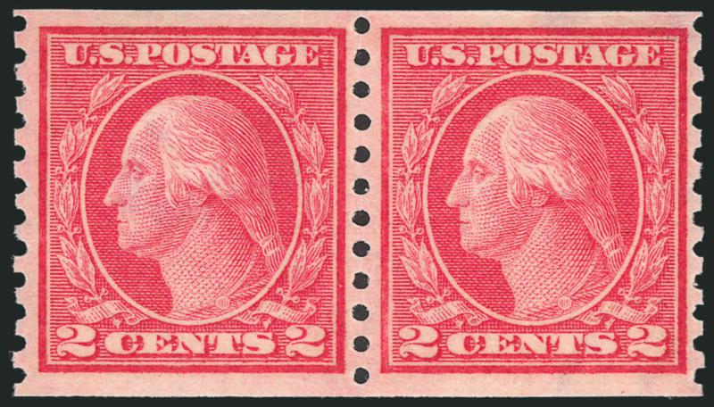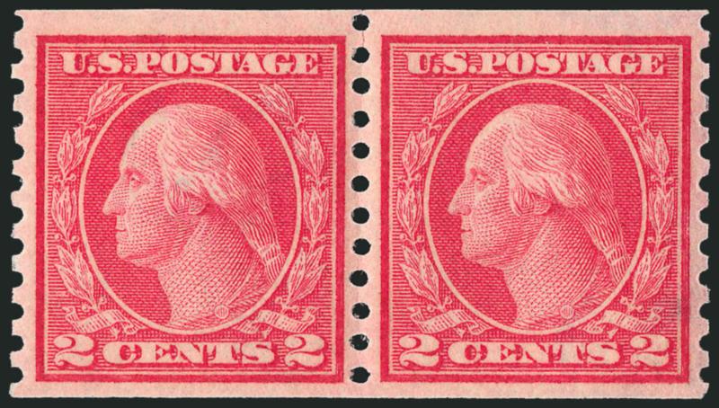 EXTREMELY FINE. A RARE MINT NEVER-HINGED JOINT LINE PAIR OF THE 1915 2-CENT TYPE I VERTICAL COIL. AN OUTSTANDING RARITY.