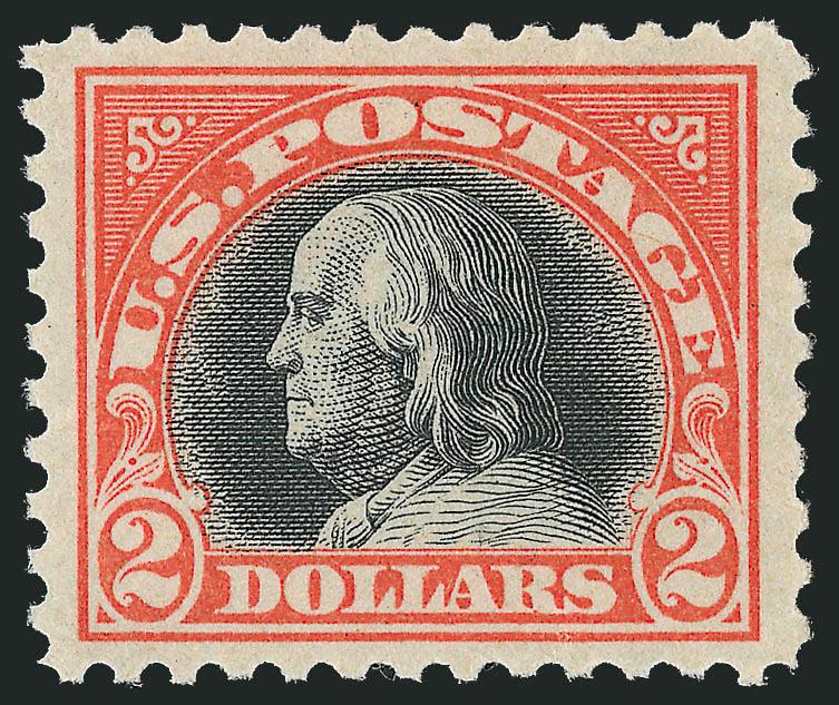 845 nh Image$2.00 Orange Red & Black (523). Mint N.H., bright colors, vignette noticeably shifted towards bottom, Extremely Fine, with 1992 P.F. and 2010 P.S.E. certificates (VF-XF 85, SMQ $1,200.00) (Image)