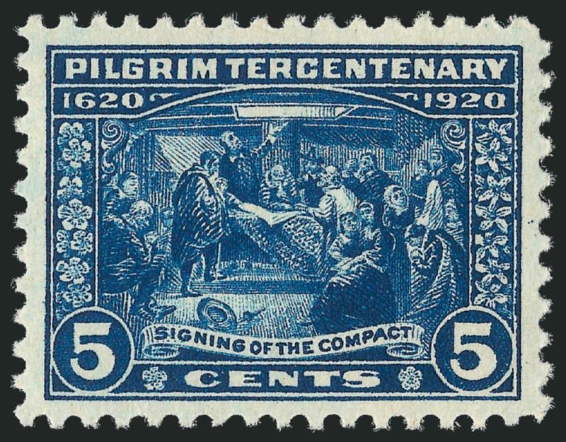 852 nh Image5c Pilgrim Tercentenary (550). Mint N.H., deep rich color and proof-like impression, gorgeous centering, Extremely Fine Gem, with 2010 P.S.E. certificate (XF-Superb 95, SMQ $300.00) (Image)